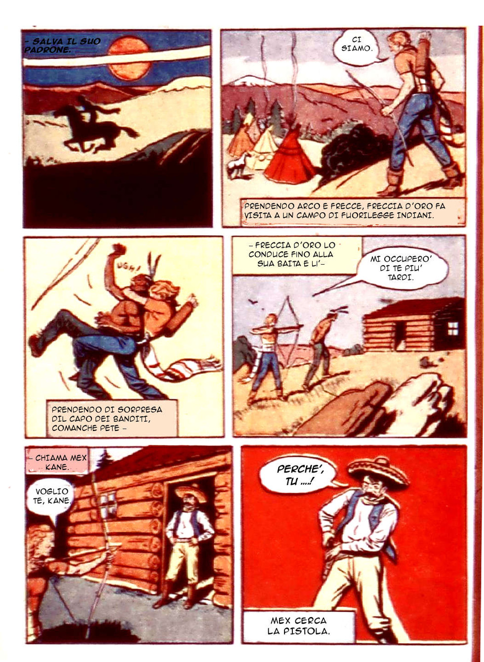 Mex Kane è un meticcio sanguinario. Ha radunato intorno a sè una banda di messicani per assaltare una diligenza, ma Freccia D'Oro sa cosa ha in mente e si è messo sulle sue tracce... Riuscirà il nostro coraggioso eroe a sventare i piani di Mex Kane, l'Assassino?