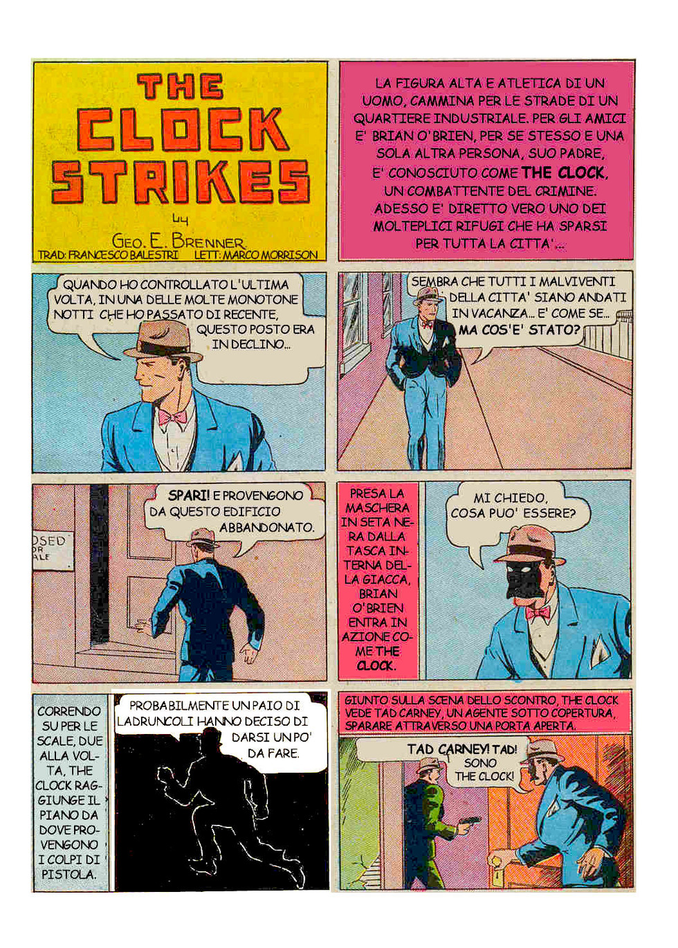 "L'identità di The Clock, il primo combattente del crimine mascherato a fumetti, è in pericolo! Si imbatterà infatti in un avversario più forte di lui, coraggioso e sfrontato. Un agente della polizia viene ferito e tocca a lui risolvere la questione scontrandosi con un uomo misterioso che minaccia di rivelare a tutti l'identità di The Clock! Sarà la sua ultima avventura?"